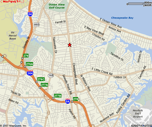 BLVD, make a right and continue on to the second light which is Chesapeake